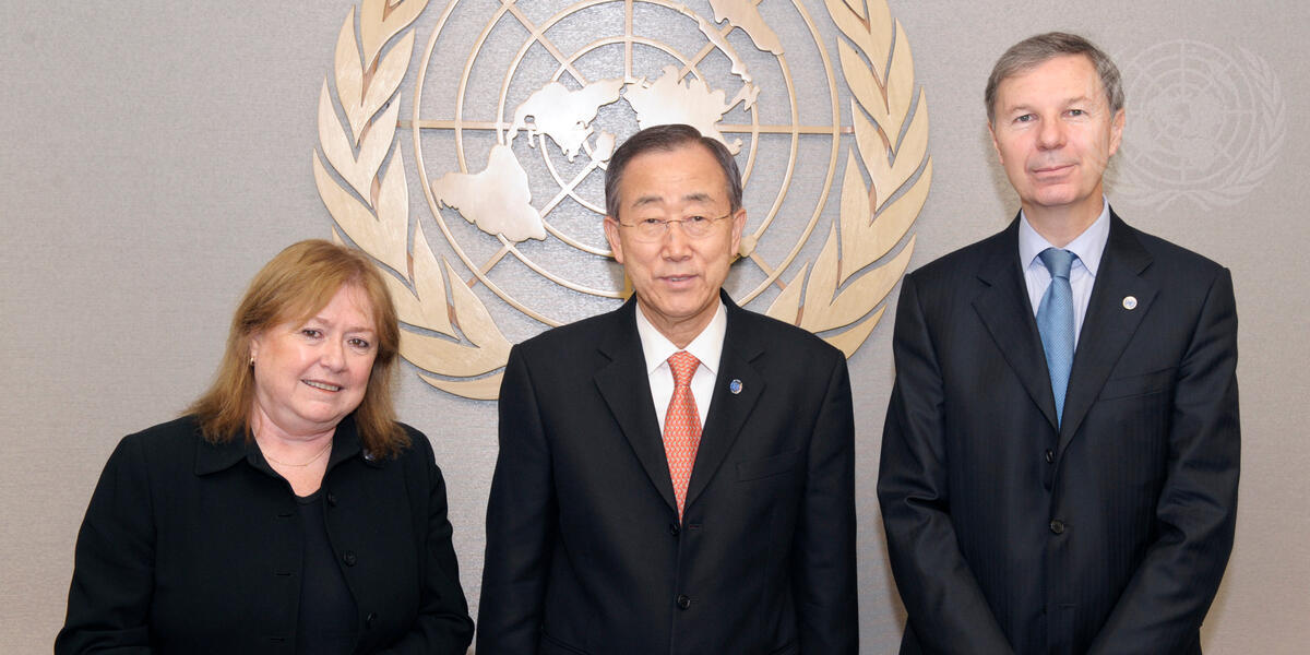 Secretary-General Ban Ki-moon (centre) meets with Susana Malcorra (left), Under-Secretary-General for Field Support, and Jean-Marie Guéhenno, Chair of the UN Senior Advisory Group for the Review of International Civilian Capacities.