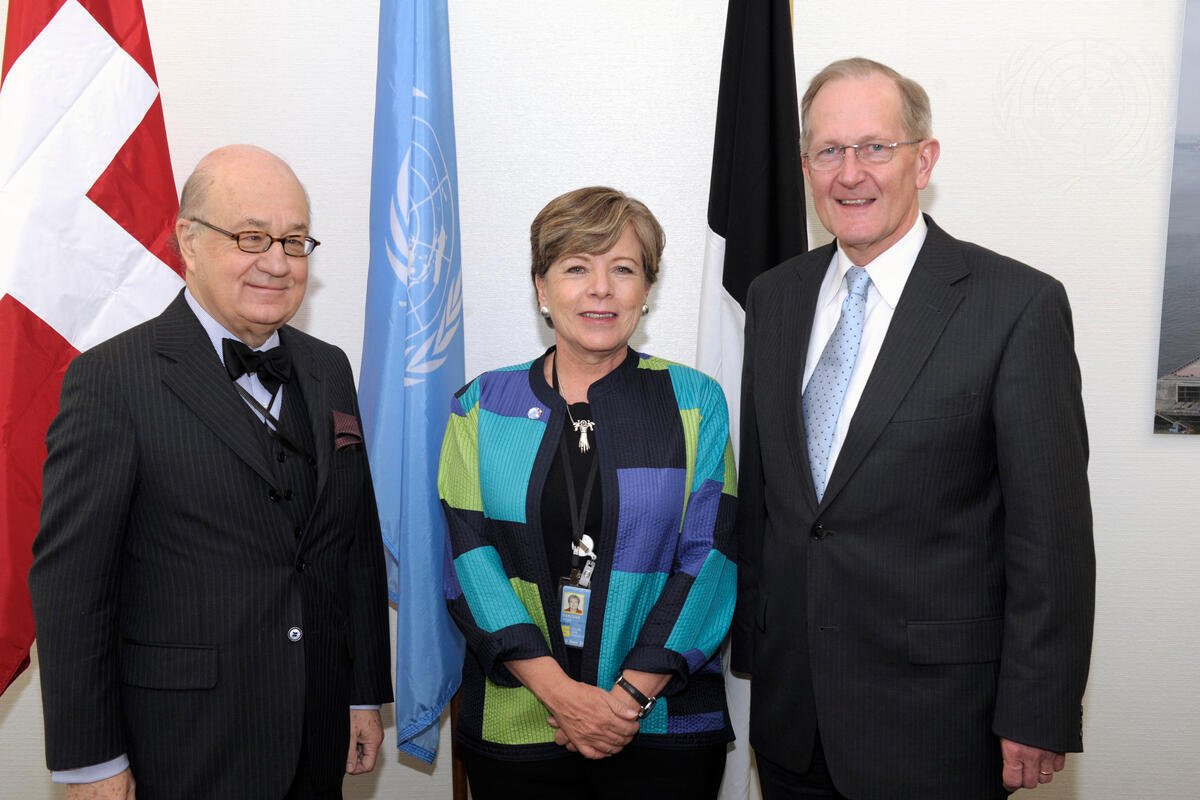 Joseph Deiss (right) President of the 65th session of the General Assembly, meets with Alicia Barcena, Executive Secretary of the Economic Commission for Latin America and the Caribbean (ECLAC) and Octavio Errázuriz (left), Permanent Representative of Chile to the UN, to discuss global governance.