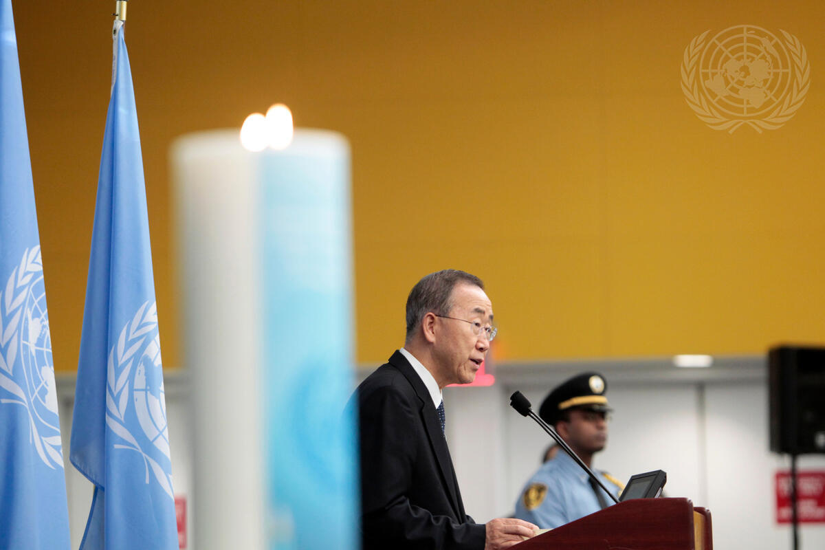 Secretary-General Ban Ki-moon addresses a memorial service honouring the UN staff members who lost their lives in the line of duty between March 2010 and November 2011.