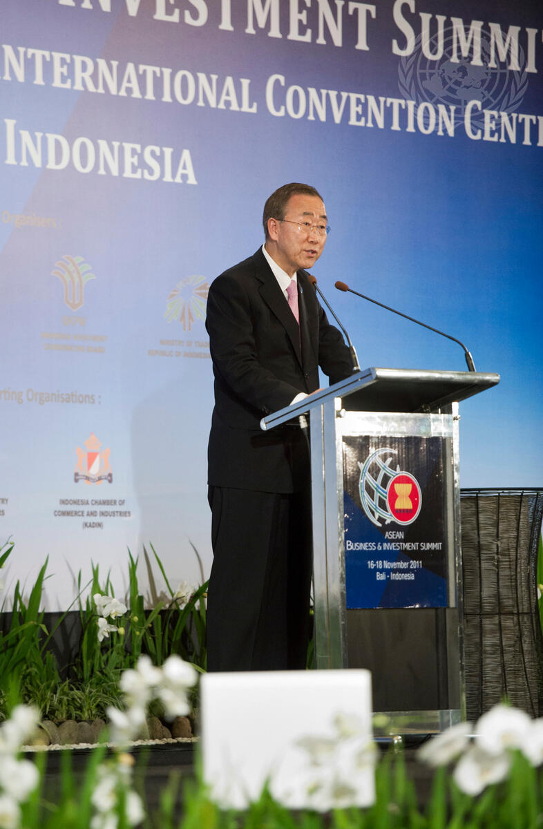 Secretary-General Ban Ki-moon speaks at the Association of Southeast Asian Nations (ASEAN)'s Business and Investment Summit in Bali, Indonesia.