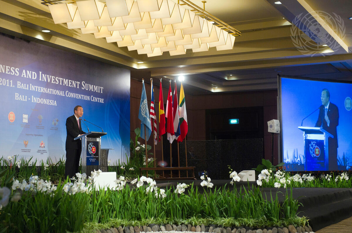 Secretary-General Ban Ki-moon speaks at the Association of Southeast Asian Nations (ASEAN)'s Business and Investment Summit in Bali, Indonesia.