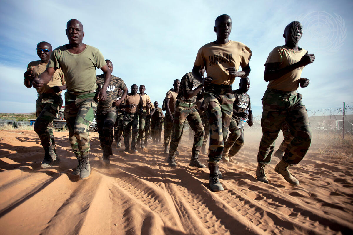 Senegalese peacekeepers with the African Union-United Nations Hybrid Operation in Darfur (UNAMID) train at their team site in Um Baro, North Darfur, Sudan. 420 Senegalese troops are posted to Um Baro and provide security for the area.