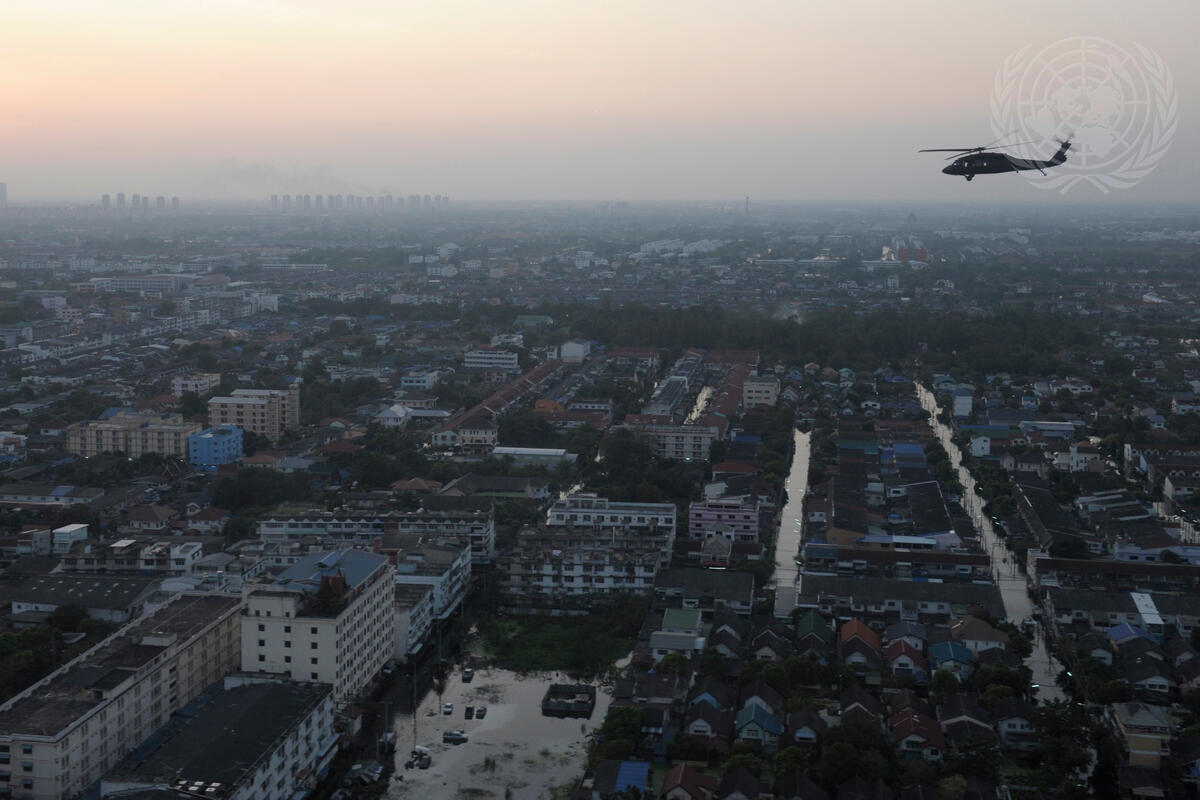 Secretary-General Sees Flood-Ravaged Bangkok from Helicopter