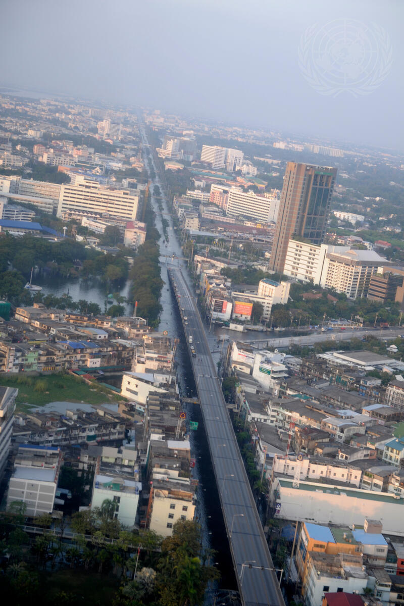 An aerial view of floods in Bangkok during a helicopter ride taken by Secretary-General Ban Ki-moon.