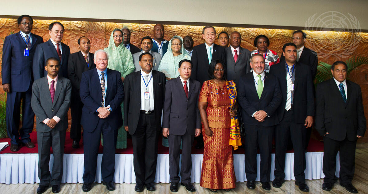 Secretary-General Ban Ki-moon (centre row, third from right) poses for a group photo with participants of the ministerial-level Climate Vulnerable Forum, including Sheikh Hasina (left of Mr. Ban), Prime Minister of Bangladesh, and Dipu Moni (centre row, third from left), Bangladesh’s Minister for Foreign Affairs, in Dhaka, Bangladesh.