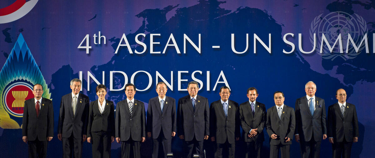 Caption Description Secretary-General Ban Ki-moon (fifth from left) and Susilo Bambang Yudhoyono (sixth from left), President of Indonesia and Host of the 19th Association of Southeast Asian Nations (ASEAN) Summit and 4th ASEAN-UN Summit, pose for a group photo with the leaders of ASEAN member states. From left: Benigno Simeon C. Aquino III, President of the Philippines; Lee Hsien Loong, Prime Minister of Singapore; Yingluck Shinawatra, Prime Minister of Thailand; Nguyen Tan Dung, Prime Minister of Viet Nam; Samdech Akka Moha Sena Padei Techo Hun Sen, Prime Minister of Cambodia; Sultan Hassanal Bolkiah Mu'izzaddin Waddaulah of Brunei Darussalam; Thongsing Thammavong, Prime Minister of Laos; Dato’ Sri Mohd Najib bin Tun Haji Abdul Razak, Prime Minister of Malaysia; and Thein Sein, President of Myanmar.