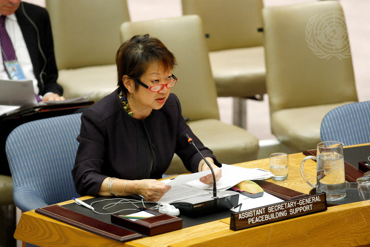 Judy Cheng-Hopkins, Assistant Secretary-General for Peacebuilding Support, briefs the Security Council on post-conflict peacebuilding.