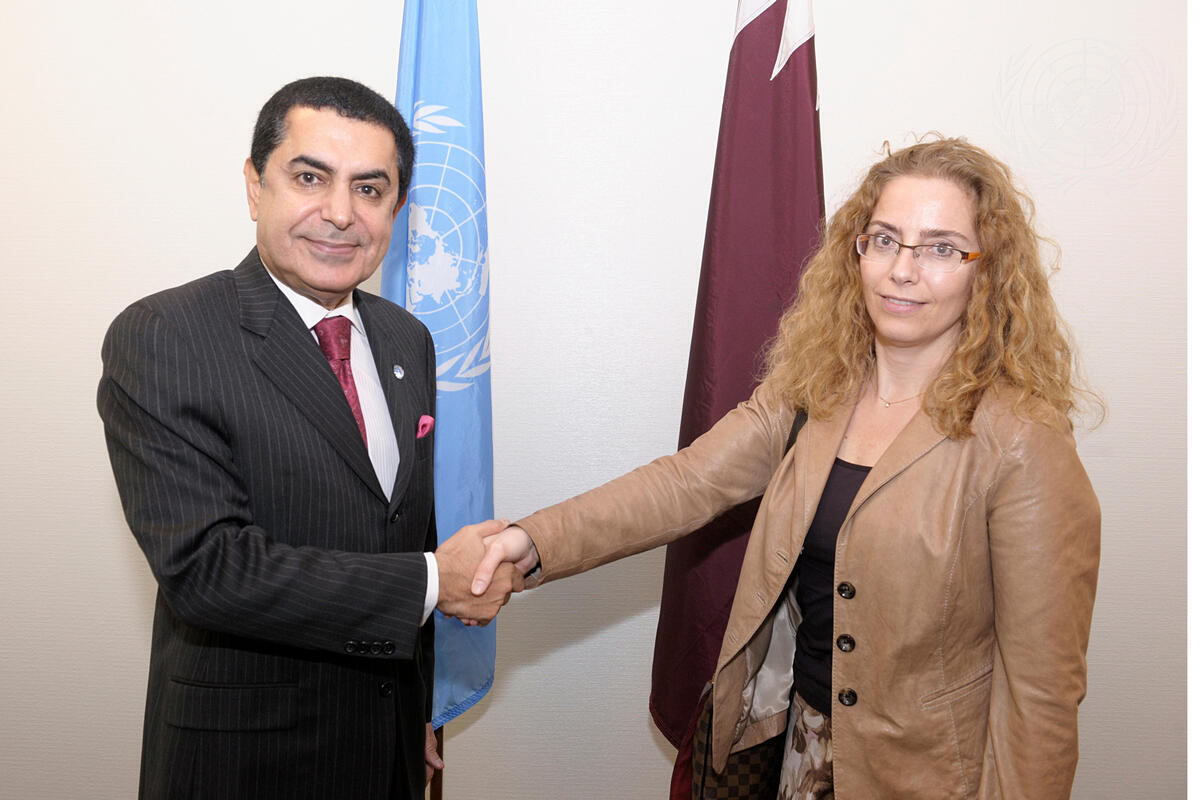 Nassir Abdulaziz Al-Nasser (left), President of the sixty-sixth session of the General Assembly, meets with Laura Dupuy Lasserre, President of the sixth cycle of the Human Rights Council.