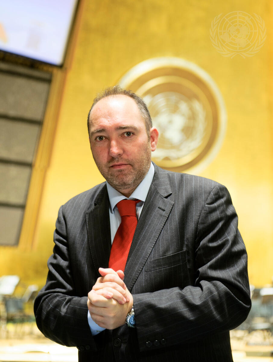 A portrait of Natalio Grueso, Director of the Centro Niemeyer, inside the General Assembly Hall during his interview with UNTV. The Centro Niemeyer is a member of the UN Academic Impact, an initiative launched by the Department of Public Information on 18 November.