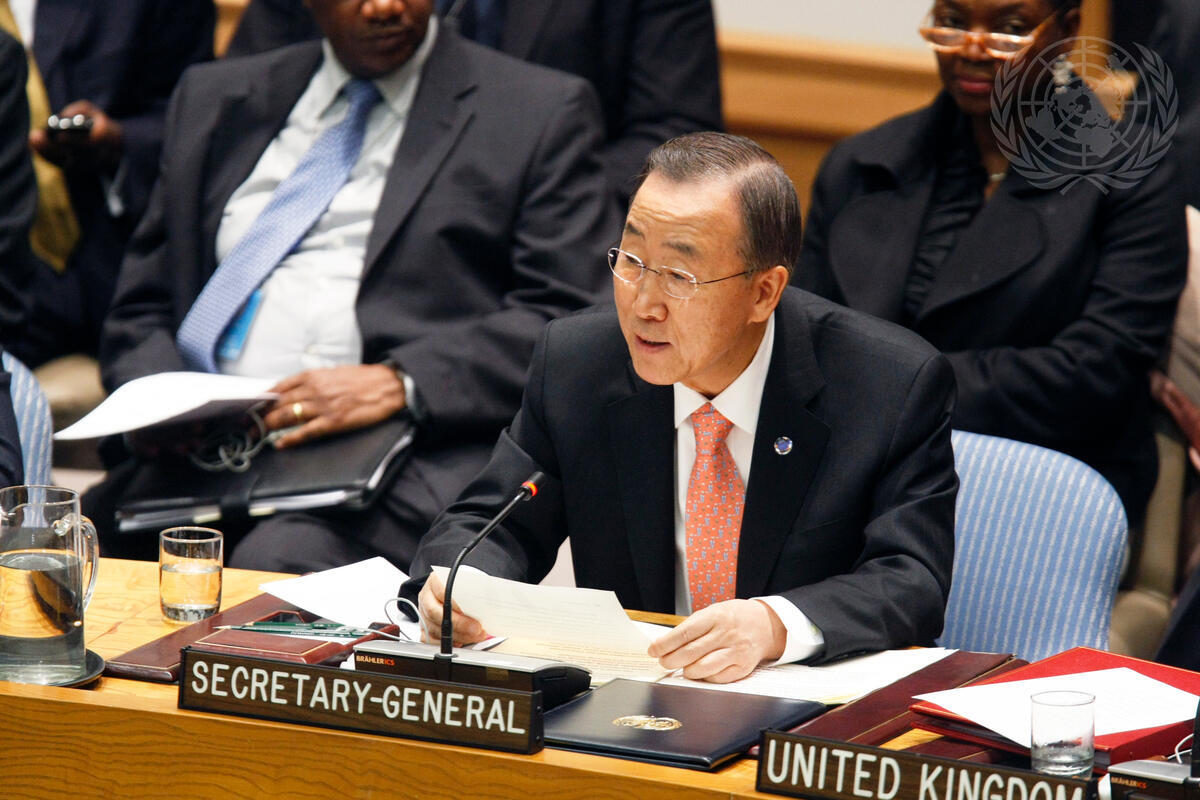 Secretary-General Ban Ki-moon (left) addresses a high-level Security Council meeting on the Sudan ahead of the country’s crucial January 2011 referenda determining whether South Sudan and the region of Abyei will remain part of the country.