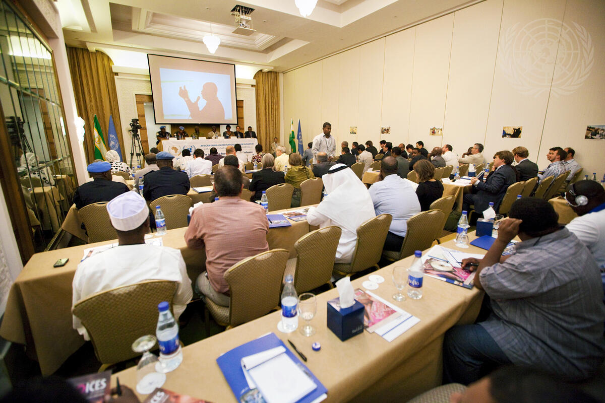 Wide view of a press conference given by Ibrahim Gambari, Joint Special Representative of the African Union-United Nations Hybrid Operation in Darfur (UNAMID).