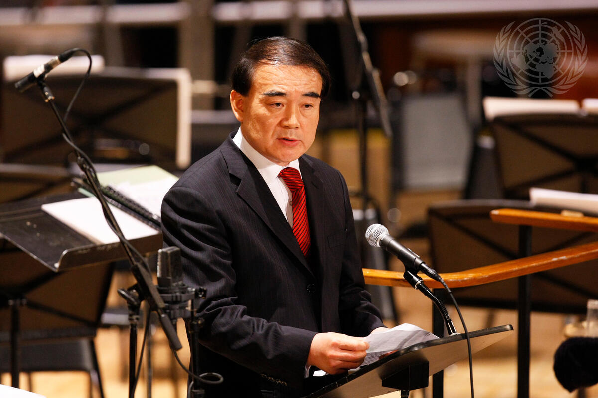 Li Baodong, Permanent Representative of the People’s Republic of China to the UN, addresses a concert event celebrating the launch of the UN Academic Impact. The concert was co-sponsored by the Permanent Mission of China and featured performances by the Asia-Pacific United Orchestra.