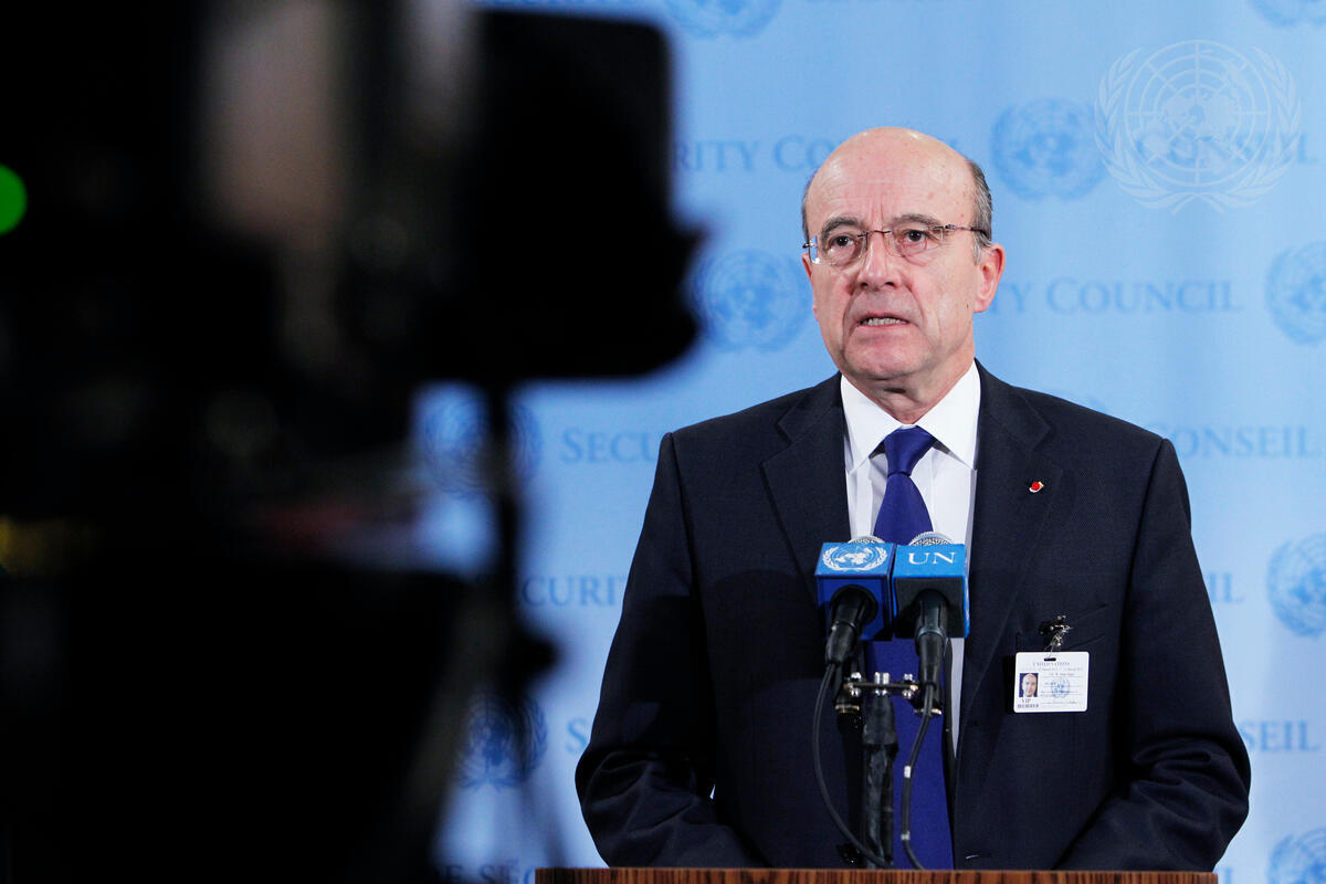 Alain Juppé, Minister for Foreign Affairs of France, briefs the press as the Security Council meets to discuss the Arab Spring.