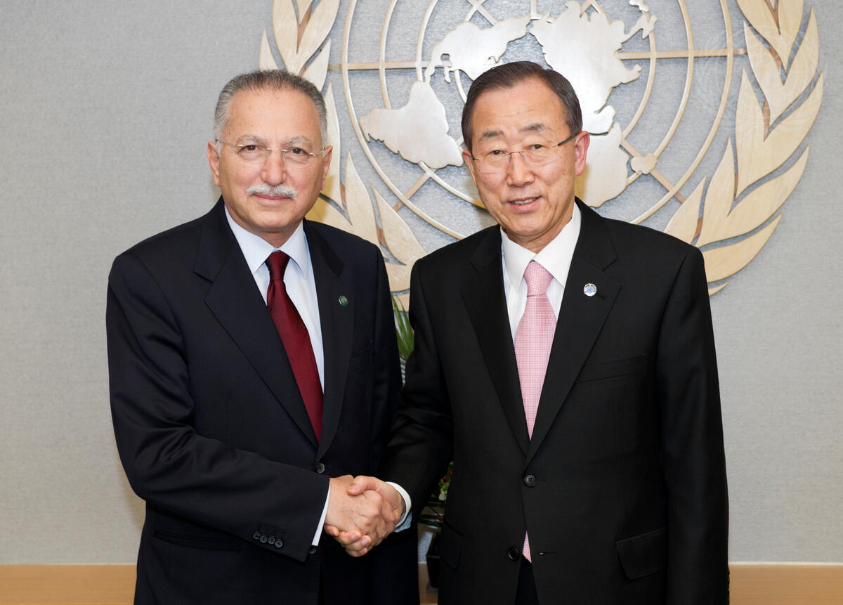 Secretary-General Ban Ki-moon (right) meets with Ekmeleddin Ihsanoglu, Secretary-General of the Organisation of Islamic Cooperation (OIC).