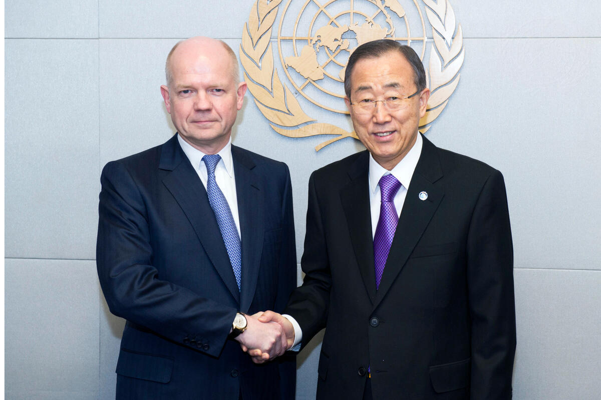 Secretary-General Ban Ki-moon (right) meets with William Hague, Secretary of State for Foreign and Commonwealth Affairs of the United Kingdom.