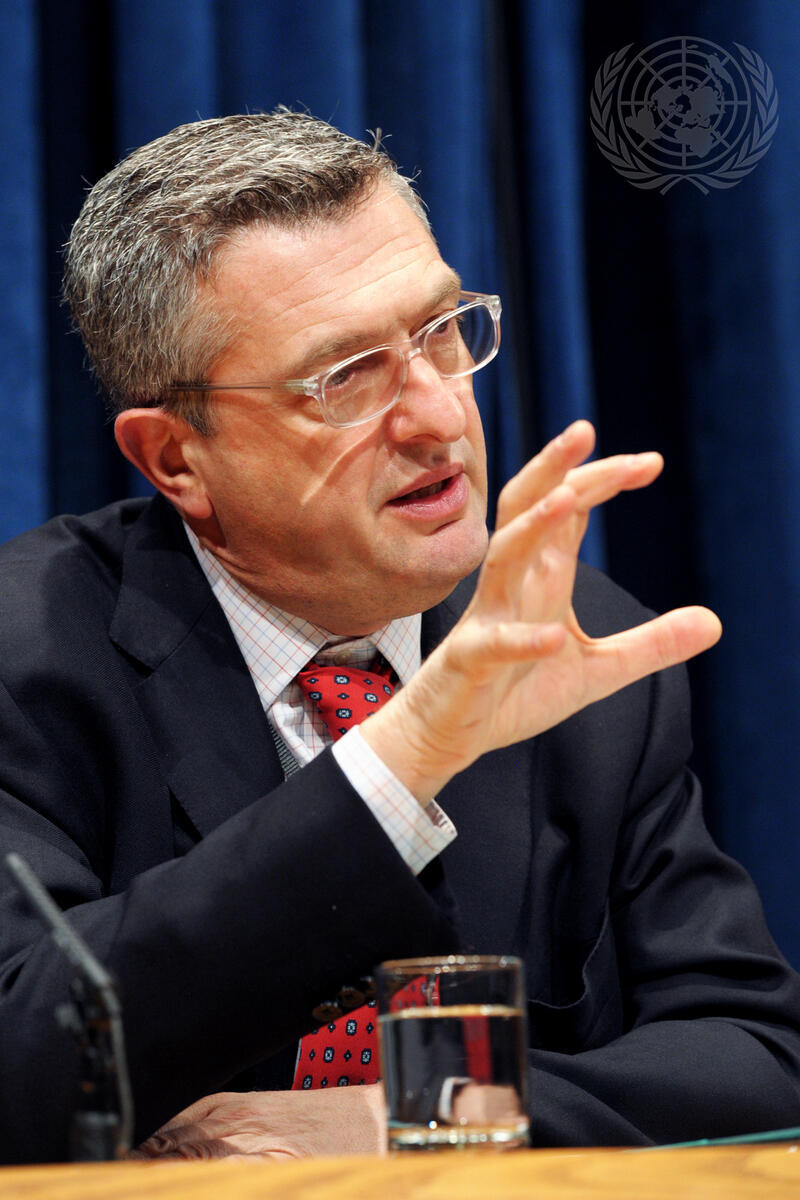 Filippo Grandi, Commissioner-General of the UN Relief and Works Agency for Palestine Refugees in the Near East (UNRWA), briefs journalists on his organization’s work across Syria, Gaza, the West Bank and Lebanon. Mr. Grandi also briefed on UNRWA funding opportunities for emerging economies, or BRICS (Brazil, India, China, South Africa) nations.