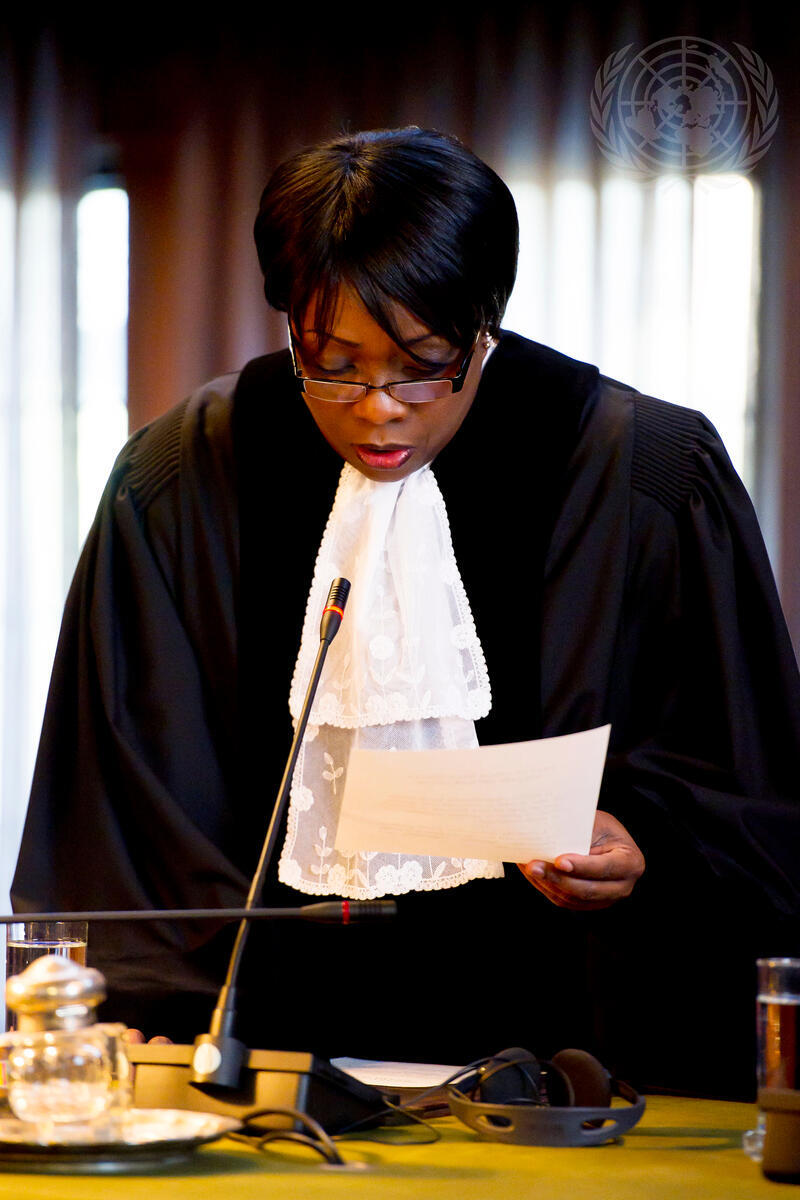 Newly-appointed Judge of the International Court of Justice (ICJ), Julia Sebutinde (Uganda), delivers her solemn declaration as she is sworn into the Court, inside the Peace Palace’s Great Hall of Justice at The Hague, Netherlands. The ICJ is composed of 15 judges elected to nine-year terms of office by the UN General Assembly and Security Council. In order to ensure a measure of continuity, one third of the Court is elected every three years. Judges are eligible for re-election. ICJ Judges must be elected from among persons of high moral character, who possess the qualifications required in their respective countries for appointment to the highest judicial offices, or are jurisconsults of recognized competence in international law.