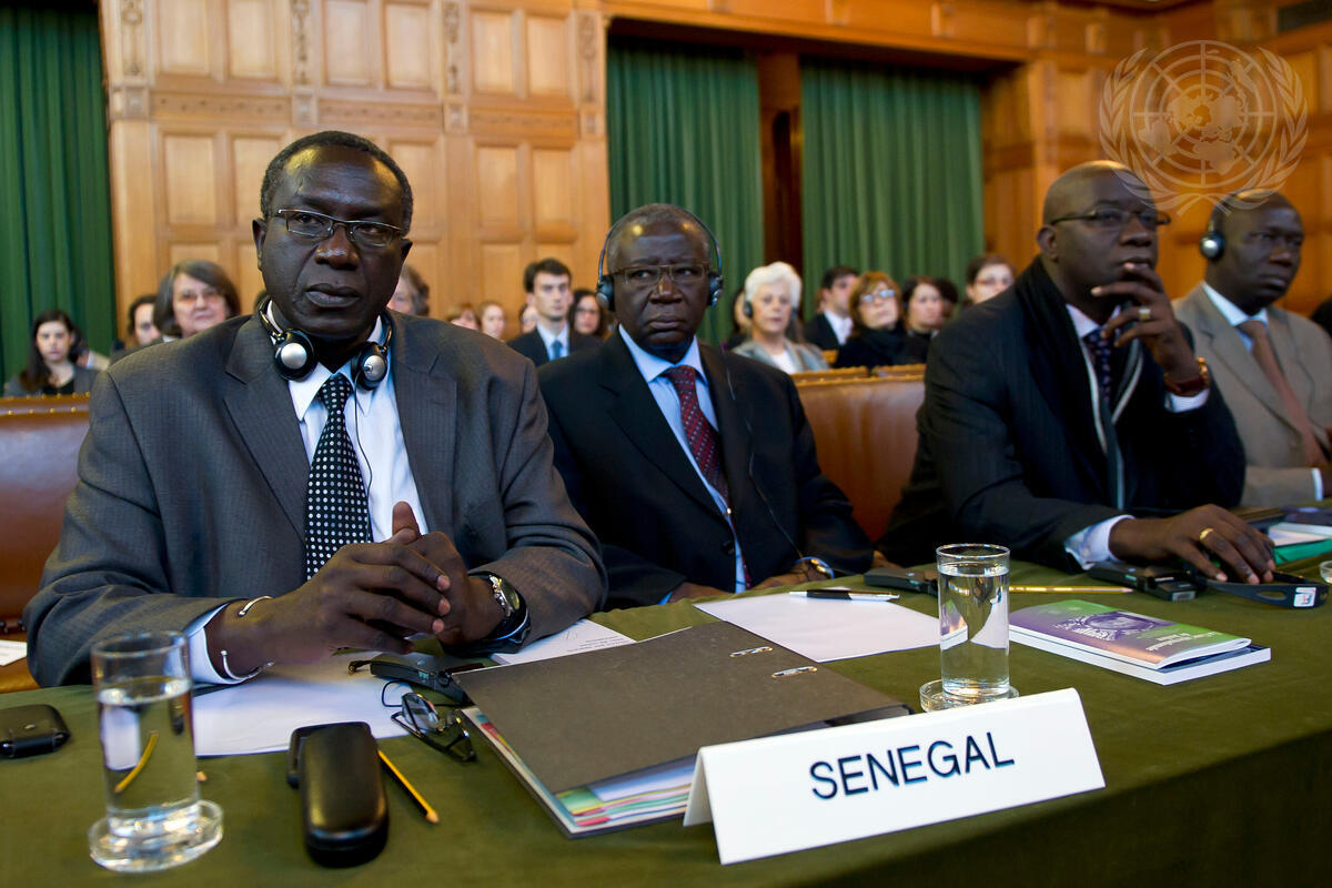 Members of the delegation of Senegal are pictured during the opening of the International Court of Justice (ICJ)’s hearings in the Belgium v. Senegal case, on questions relating to the obligation to prosecute or extradite, at The Hague, Netherlands.