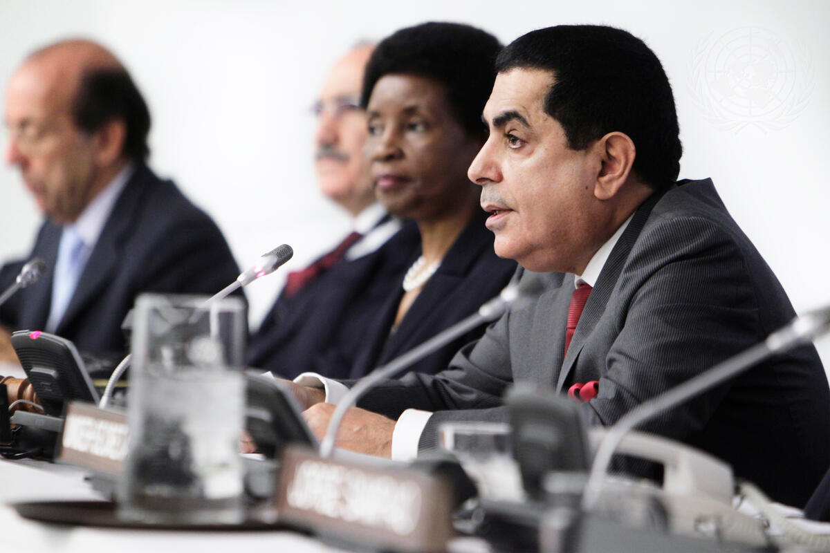 Nassir Abdulaziz Al-Nasser (right), President of the sixty-sixth session of the General Assembly, chairs the Assembly’s day-long thematic debate, “Fostering Cross-Cultural Understanding for Building Peaceful and Inclusive Societies”.