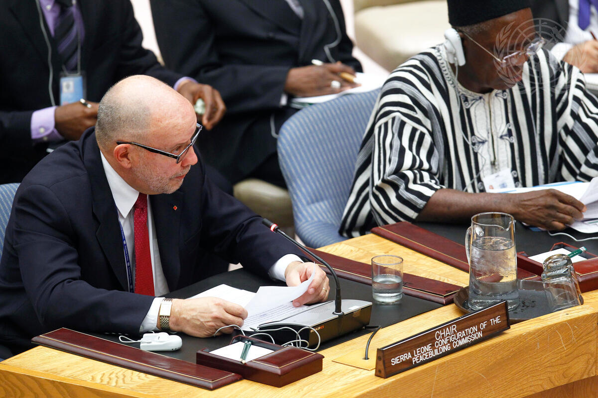 Guillermo E. Rishchynski, Permanent Representative of Canada to the UN and Chair of the Sierra Leone configuration of the Peacebuilding Commission, speaks at a meeting of the Security Council on Sierra Leone.