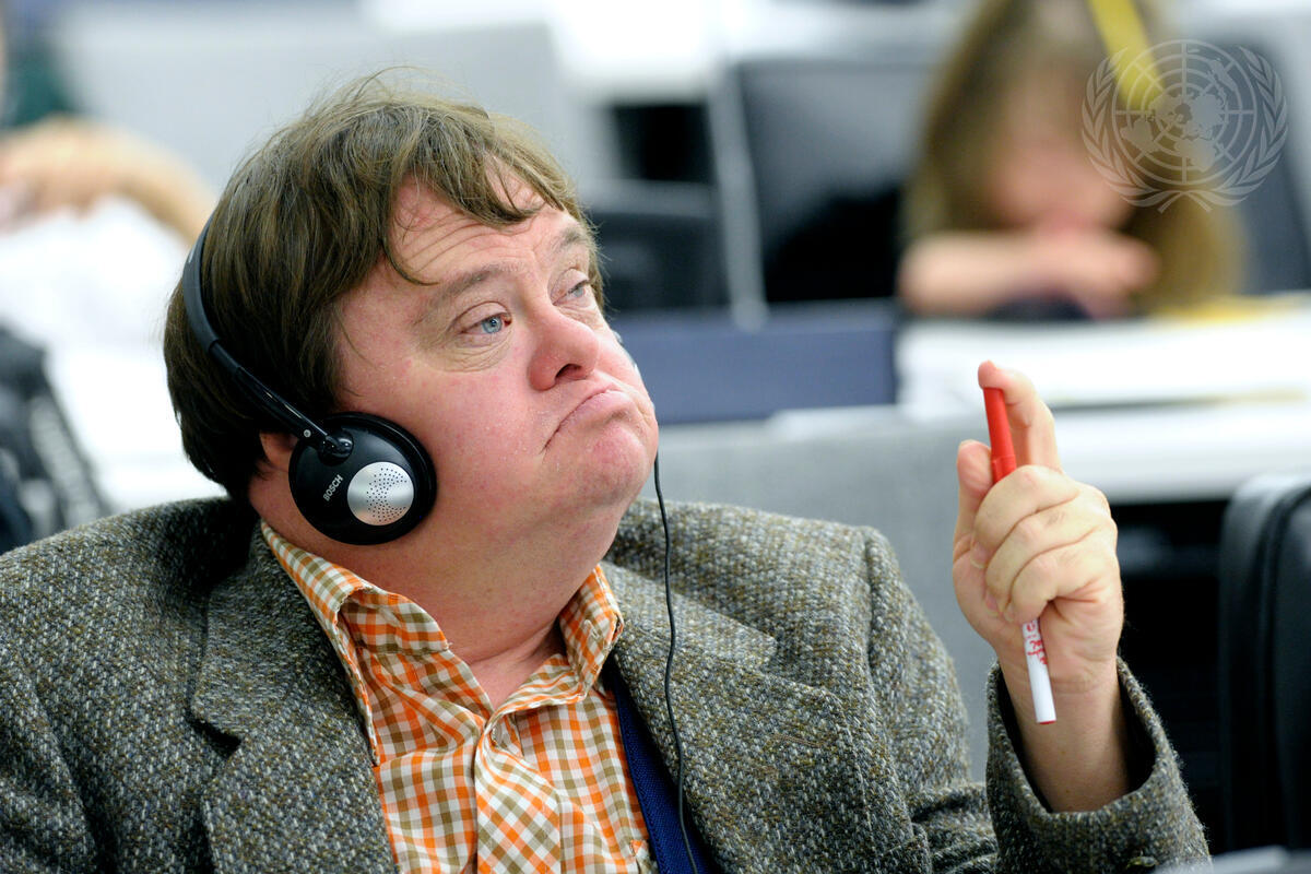 A member of the audience during UN Headquarters’ first official observance of World Down Syndrome Day (21 March). The event entitled, ""Building our Future"", is co-organized by the Permanent Missions of Brazil and Poland, the Department of Economic and Social Affairs (DESA), the United Nations Children’s Fund (UNICEF), Down Syndrome International and other stakeholders.