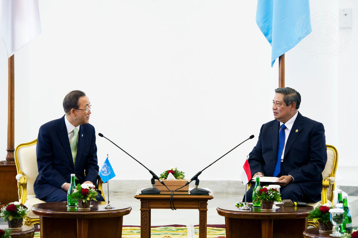 Secretary-General Ban Ki-moon (left) meets with Susilo Bambang Yudhoyono, President of the Republic of Indonesia, in Jakarta.