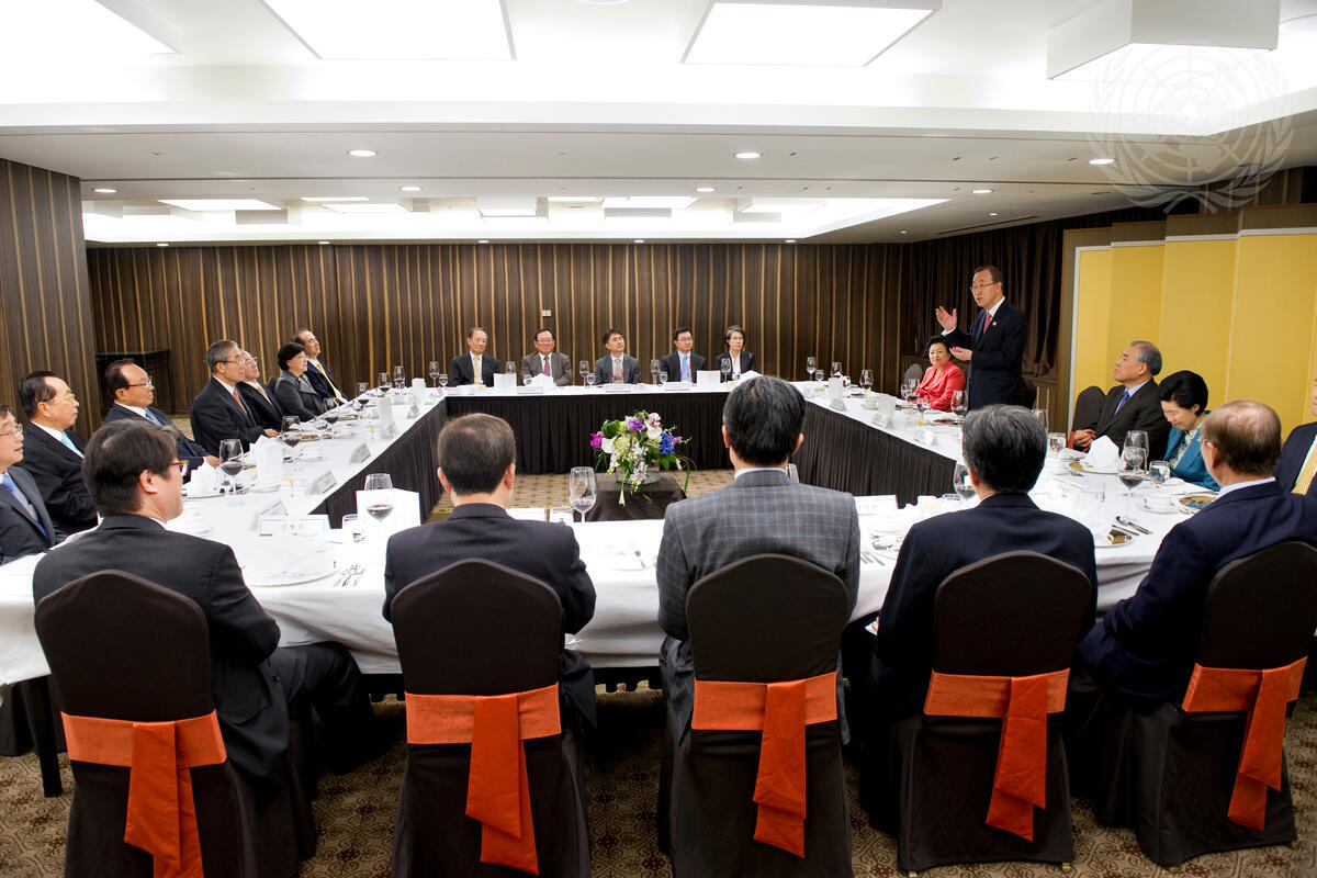Secretary-General Ban Ki-moon (standing right) speaks at a luncheon hosted by the World Federation of United Nations Associations (WFUNA) in Seoul, Republic of Korea.