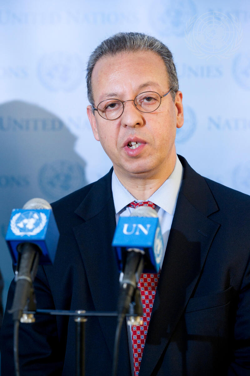 Jamal Benomar, the Secretary-General’s Special Adviser on Yemen, speaks to reporters after participating in a closed, informal (known as “Arria Formula”) meeting of the Security Council commemorating International Women’s Day, on the role of women in mediation and conflict resolution.