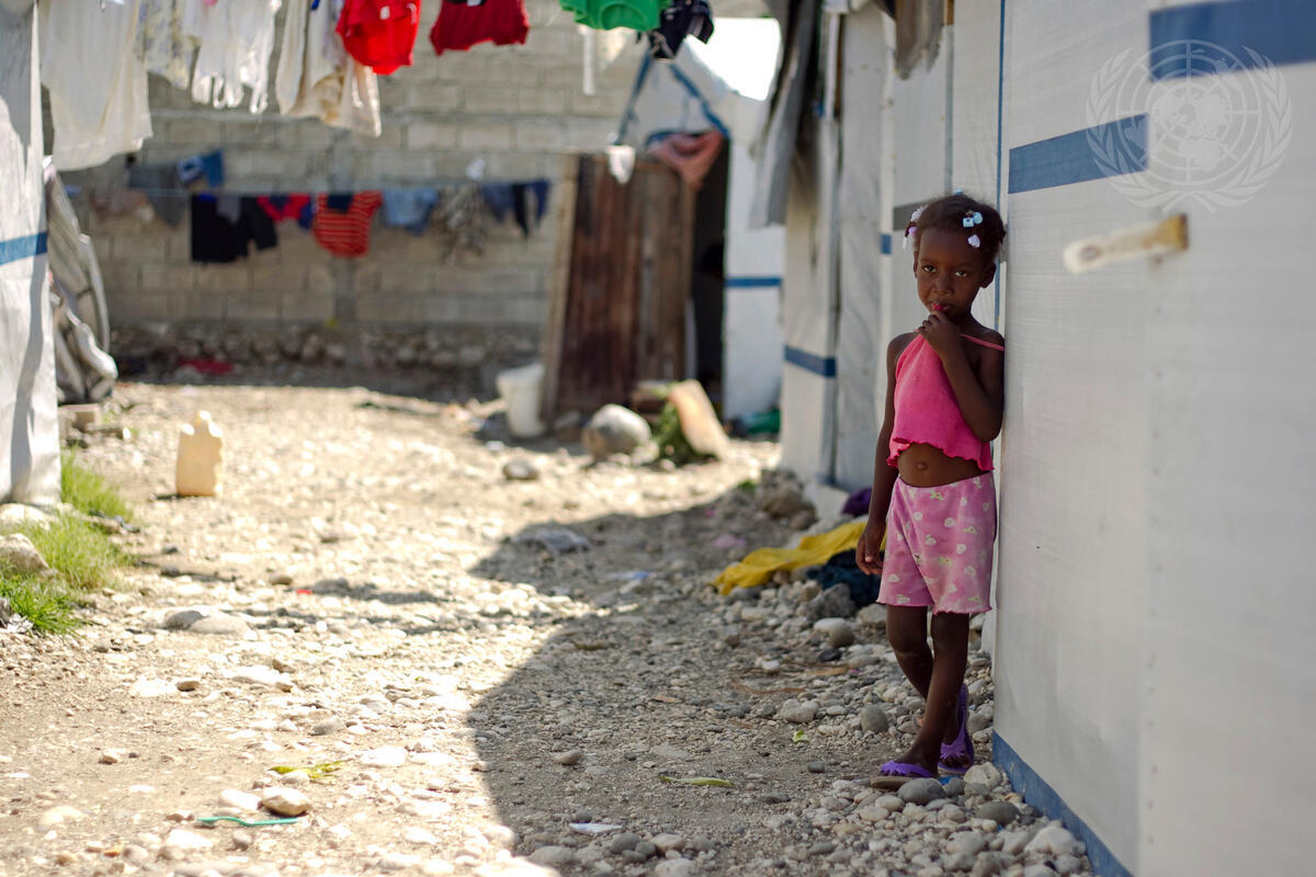 A girl stands in her front of her home at a camp for persons displaced by the January 2010 earthquake in Port-au-Prince, Haiti. The International Organization for Migration (IOM) is working with state and local officials to find a solution for Haiti's camps which are generally located on private land.
