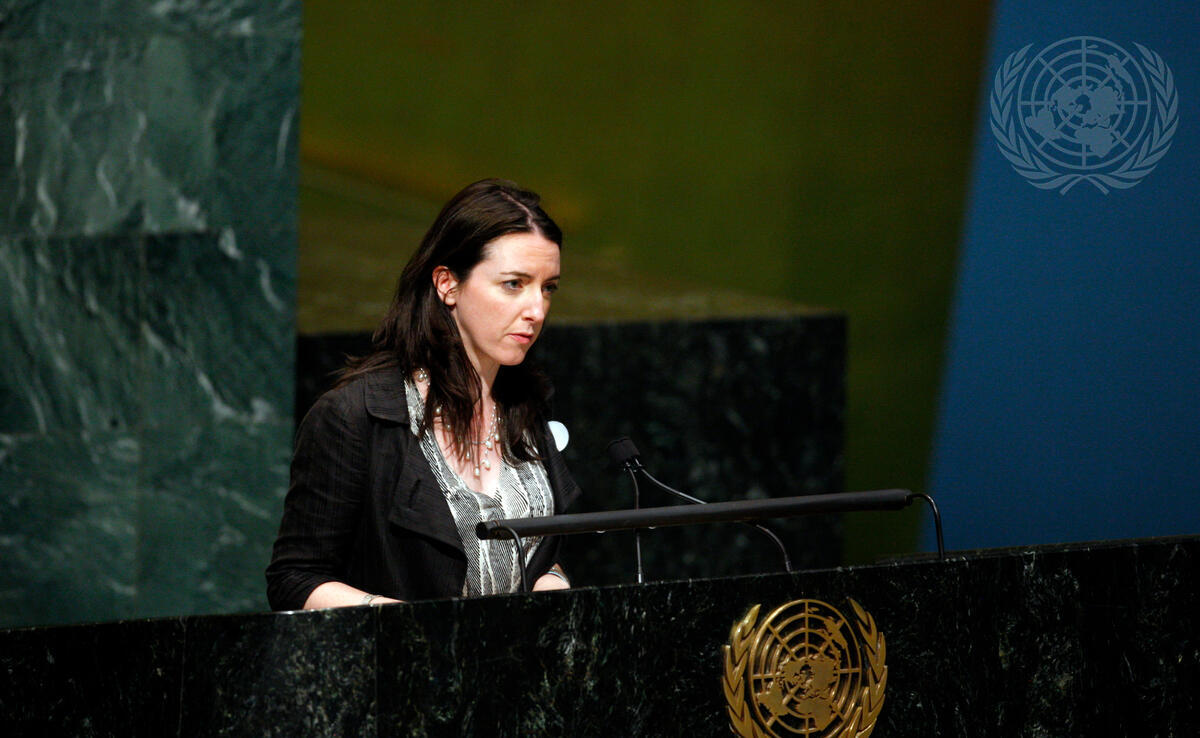 Nicole Mannion, Rapporteur of the Fifth Committee (Administrative and Budgetary),introduces that body's reports to the General Assembly.