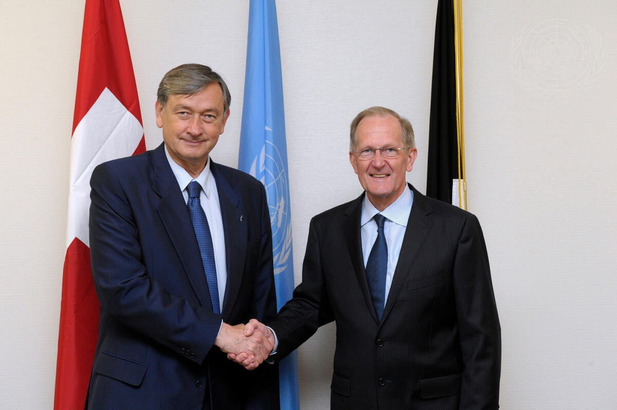 Joseph Deiss (right), President of the sixty-fifth session of the General Assembly, meets with Danilo Türk, President of the Republic of Slovenia.