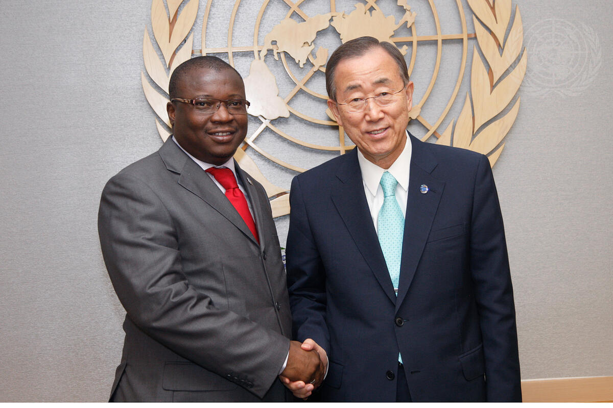 Secretary-General Ban Ki-moon (right) meets with Aristides Ocante da Silva, Minister of Defense of Guinea-Bissau.