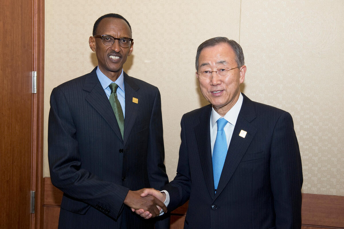 Secretary-General Ban Ki-moon (right) meets with Paul Kagame, President of the Republic of Rwanda, at the 4th High Level Forum on Aid Effectiveness in Busan, Republic of Korea.
