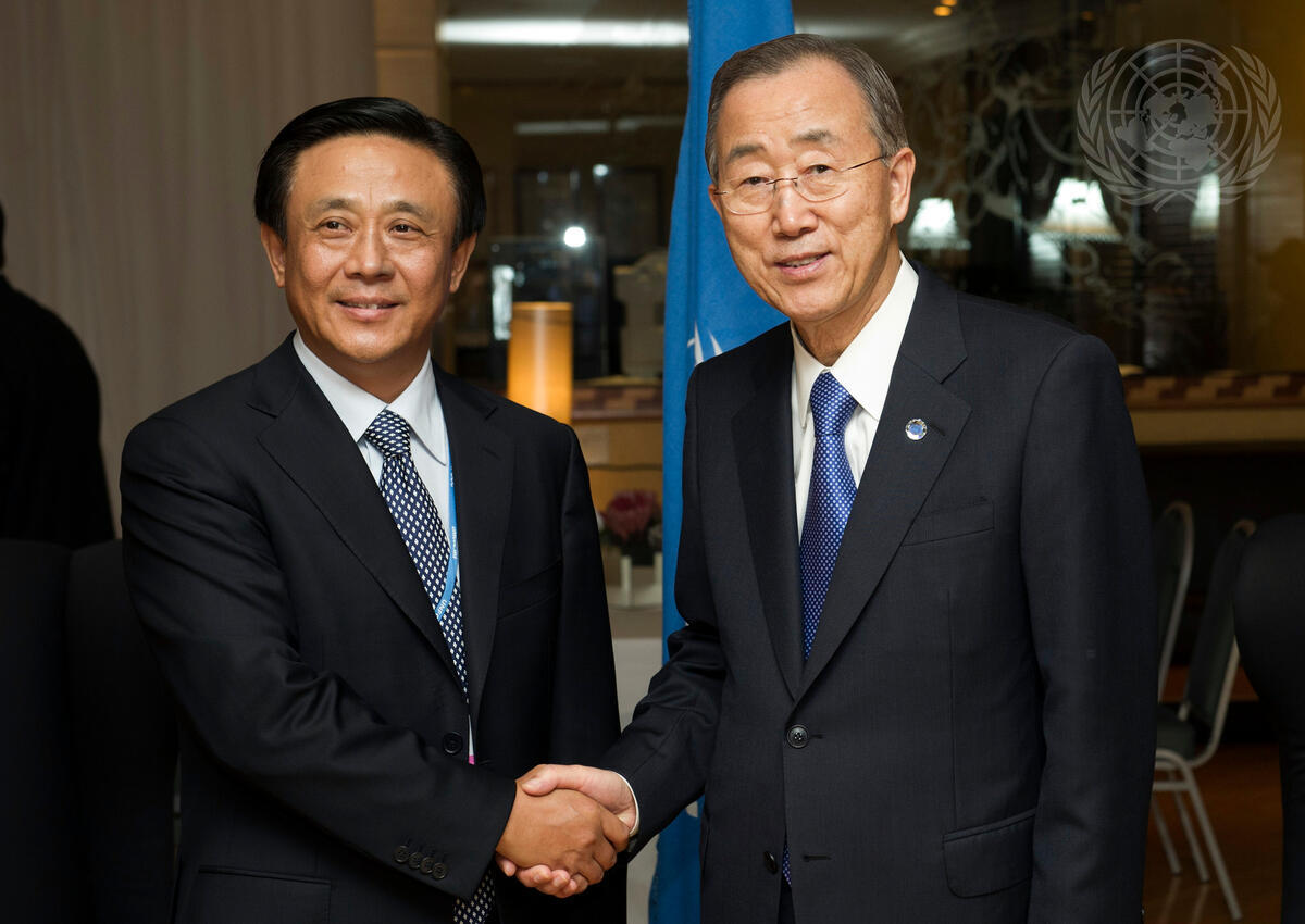 Caption Description Secretary-General Ban Ki-moon (right) meets with Wang Xiaokang, President of China Energy Conservation and Environmental Protection Group (CECEP), at the COP17/CMP7 UN Climate Change Conference in Durban, South Africa.