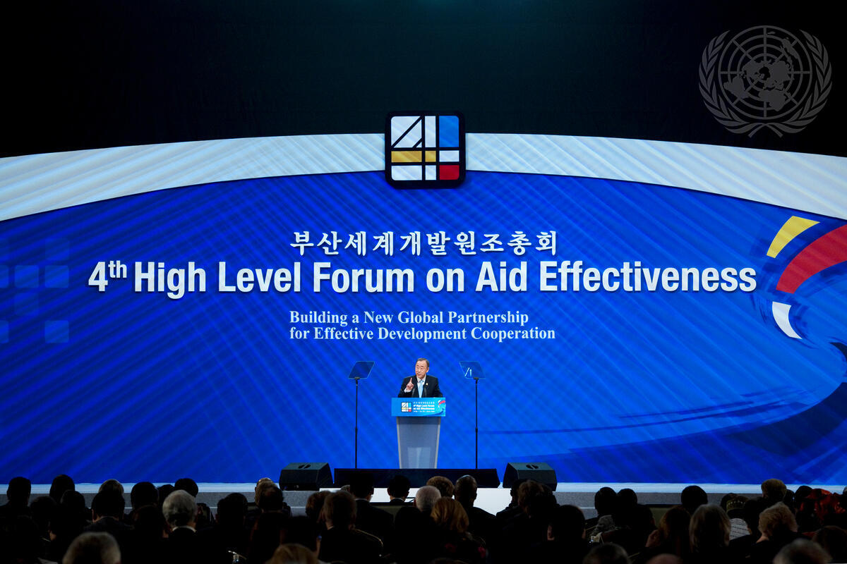 Secretary-General Ban Ki-moon addresses the 4th High Level Forum on Aid Effectiveness in Busan, Republic of Korea.