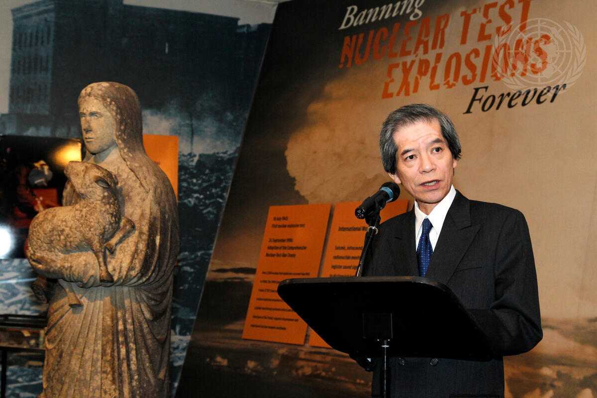 Tsuneo Nishida, Permanent Representative of Japan to the UN, speaks at a special event co-organized by the Government of Japan, the Department of Public Information (DPI), and the UN Office for Disarmament Affairs (UNODA), commemorating Disarmament Week (annually 24-30 October) and the legacy of Hibakusha, the survivors of the atomic bombings in Hiroshima and Nagasaki. The winners of a “Poetry for Peace” contest, in which Hibakusha testimonies were used as inspiration, were announced during the event.