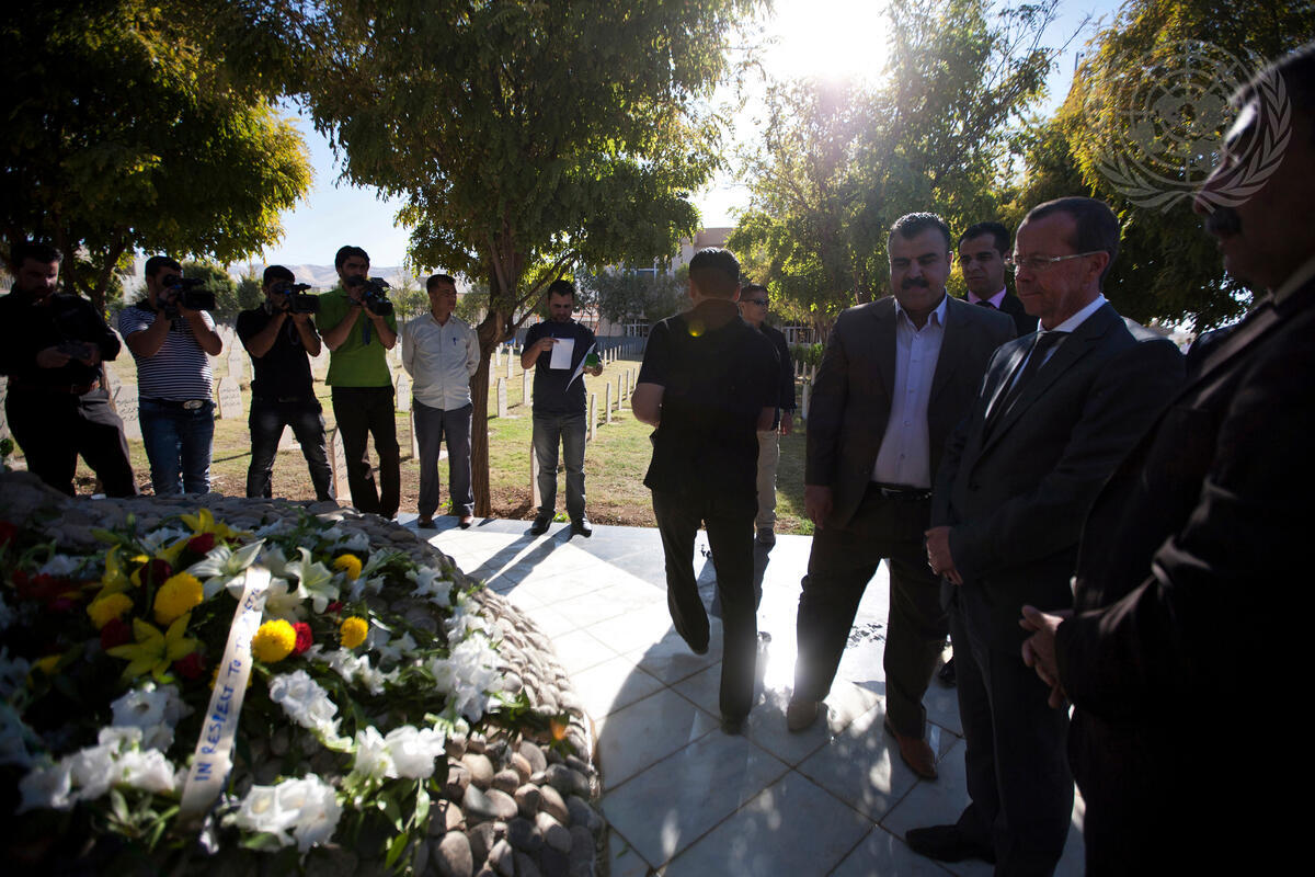Martin Kobler (second from right), Special Representative of the Secretary-General for Iraq, visits the symbolic Martyrs’ Cemetery in Halabja, Kurdish Iraq, which honours the victims of Saddam Hussein’s notorious 1988 chemical weapons attack against the local population.