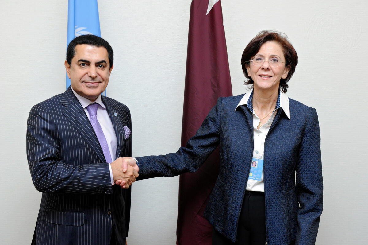 Nassir Abdulaziz Al-Nasser (left), President of the sixty-sixth session of the General Assembly, meets with Rima Khalaf, Executive Secretary of the UN Economic and Social Commission for Western Asia (ESCWA).