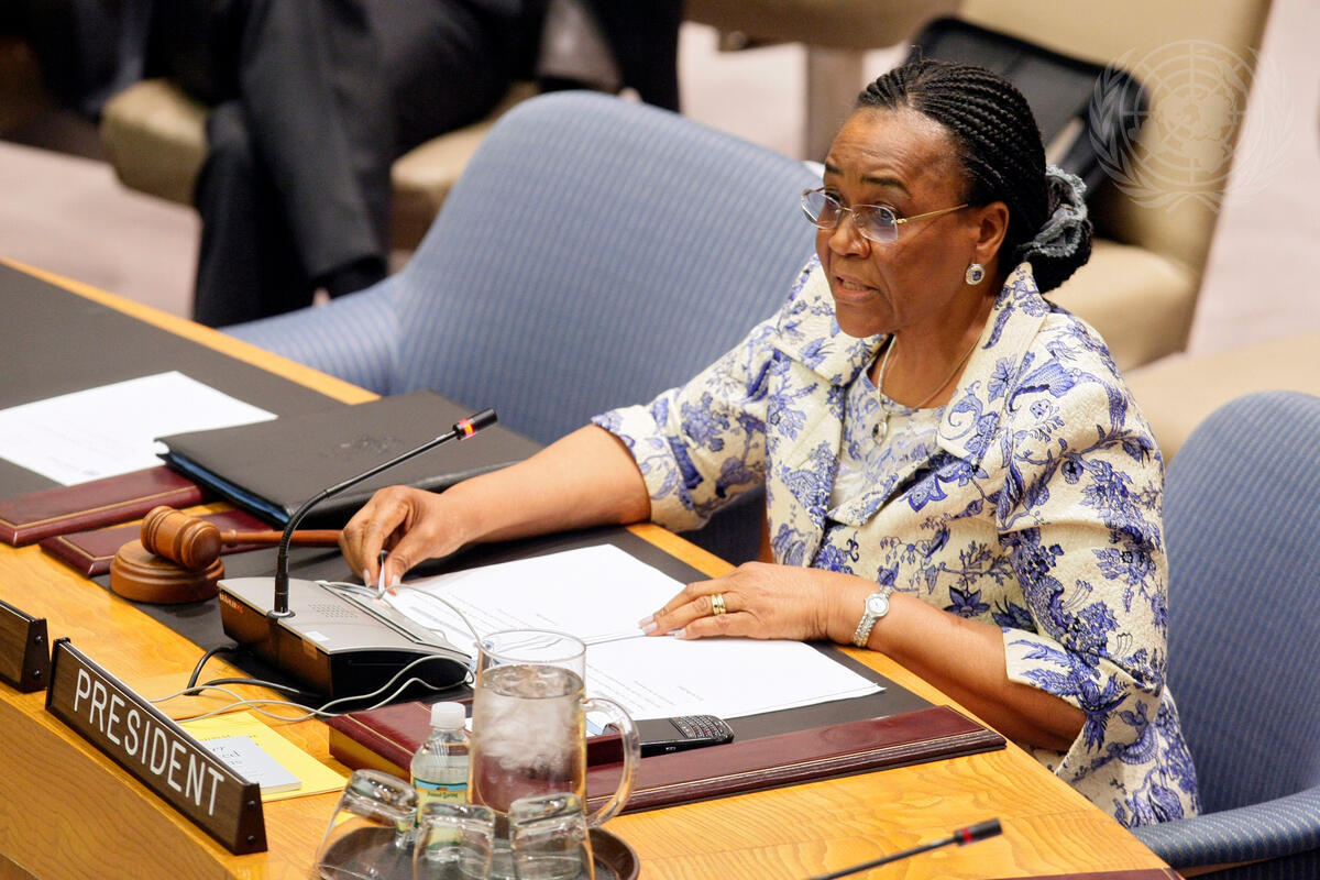 U. Joy Ogwu, Permanent Representative of Nigeria to the UN and President of the Security Council for October, chairs a meeting of the Council on the situation in Darfur, Sudan. At the meeting Members reviewed the Secretary-General’s latest report on the African Union-United Nations Hybrid Operation in Darfur (UNAMID).