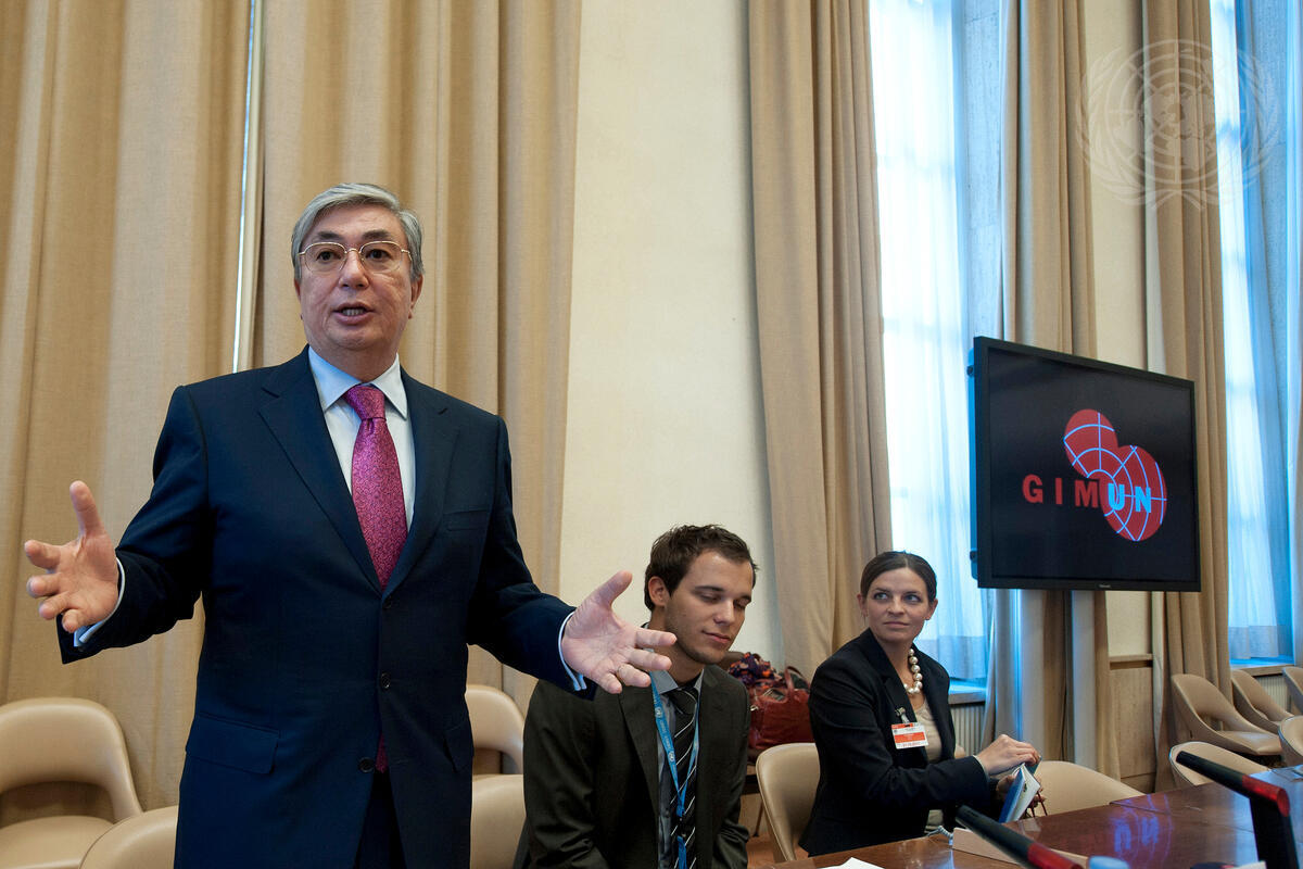 Kassym-Jomart Tokayev (left), Director-General of the United Nations Office at Geneva (UNOG), addresses UNOG’s special event, in collaboration with the Geneva International Model United Nations (GIMUN), to commemorate the 2011 United Nations Day (annually 24 October), marking the sixty-sixth anniversary of the signing of the organization’s charter.