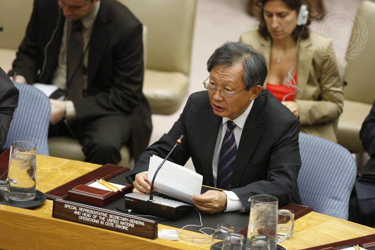 Choi Young-jin, Special Representative of the Secretary-General and Head of the United Nations Operations in Côte d’Ivoire (UNOCI), addresses the Security Council. He says Côte d’Ivoire faces multiple challenges after emerging from its recent post-electoral crisis, but none more critical than restoring law and order throughout the West African nation.