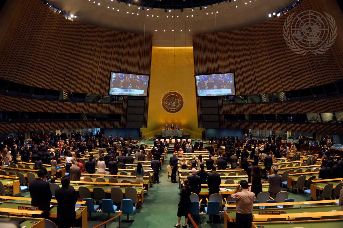A wide view of the General Assembly High-Level Meeting on Youth. A moment of silence is observed for the victims in Oslo and Utoya. Representatives from 400 youth groups attend the meeting to discuss a wide range of issues of concern to the younger generation, including jobs, poverty and sustainable development.