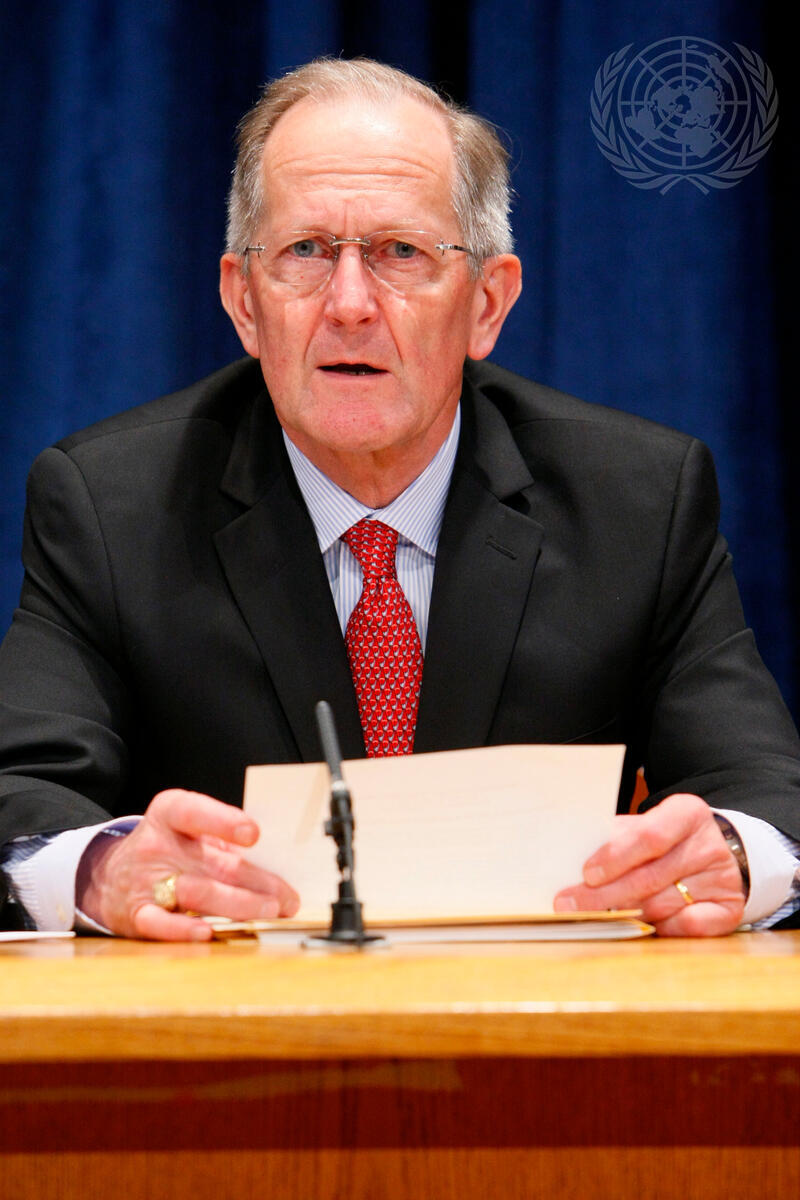 Joseph Deiss, President of the sixty-fifth session of the General Assembly, speaks to journalists at the press conference held during the General Assembly High-Level Meeting on Youth.