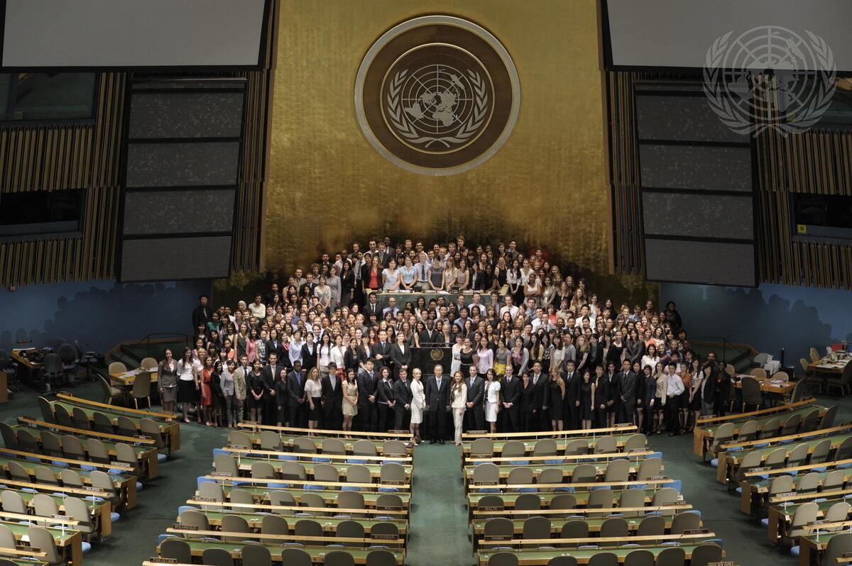 Group photograph of Secretary-General Ban Ki-moon and United Nations interns.