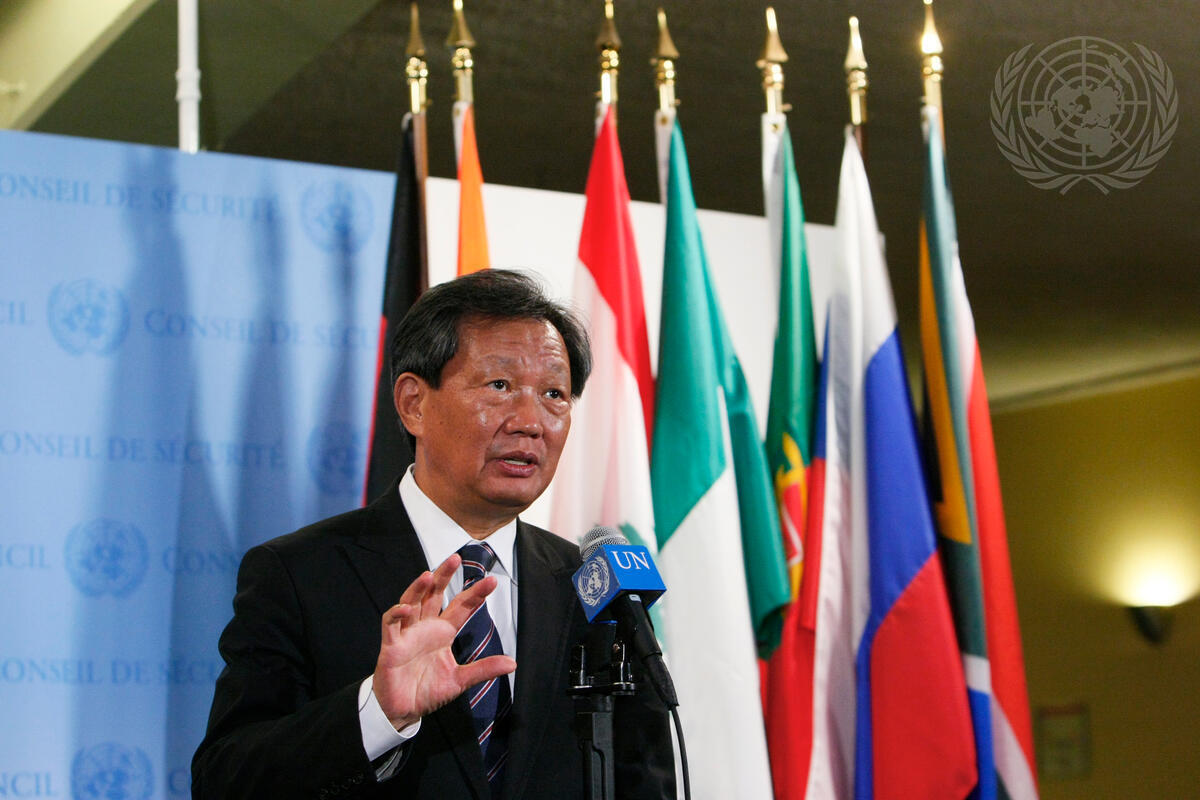 Choi Young-jin, Special Representative of the Secretary-General and Head of the United Nations Operations in Côte d’Ivoire (UNOCI), speaks to journalists after the Security Council meeting.
