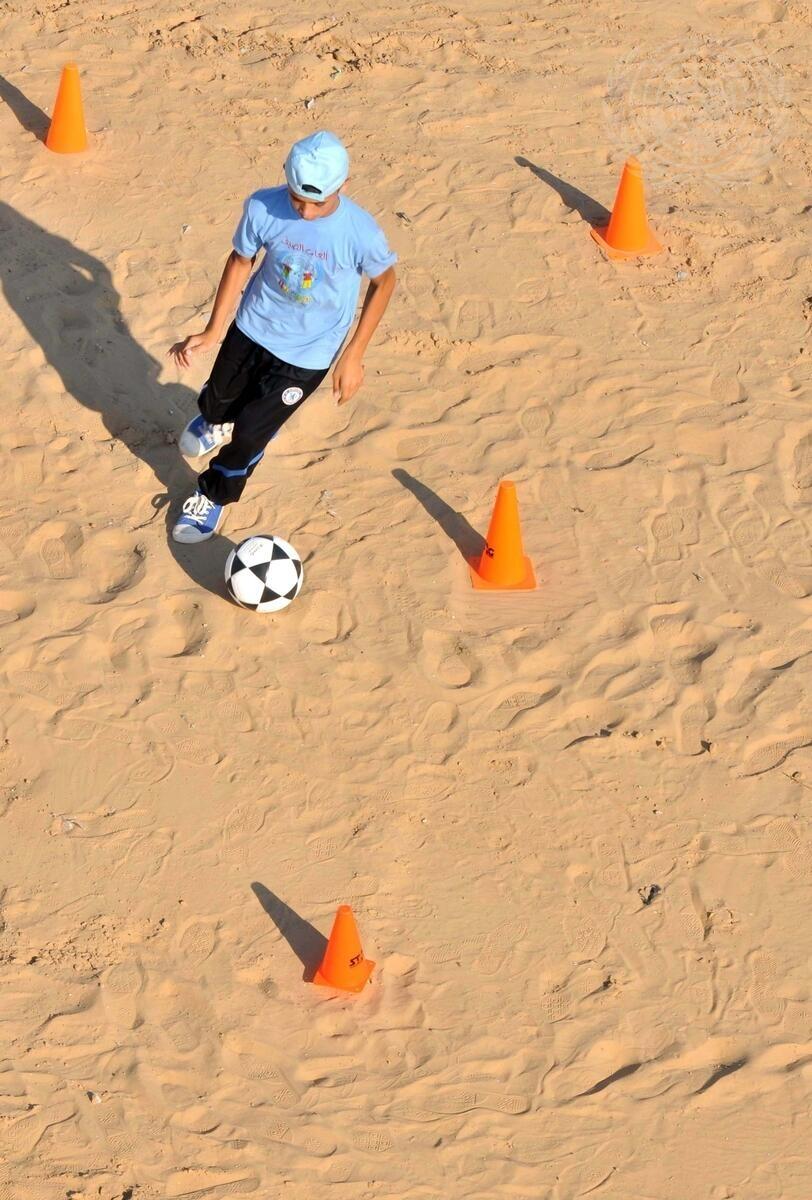 A Palestinian child stands with a football in an attempt together with other Palestinian children to beat the Guinness world record of 2,011 footballs bounced simultaneously. The event is organised by the United Nations Relief and Works Agency (UNRWA) in the southern Gaza Strip town of Rafah.