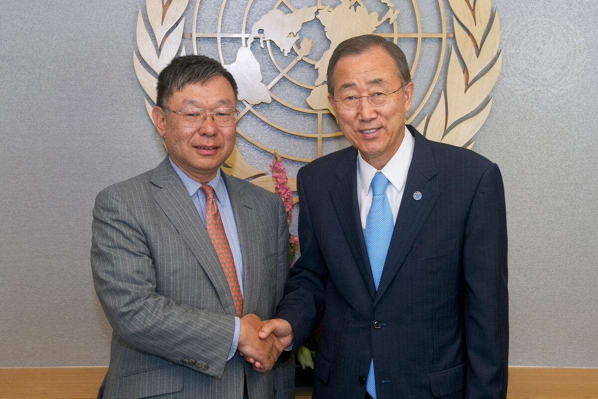 Secretary-General Ban Ki-moon (right) meets with Shigeki Sumi, Deputy Permanent Representative of Japan.