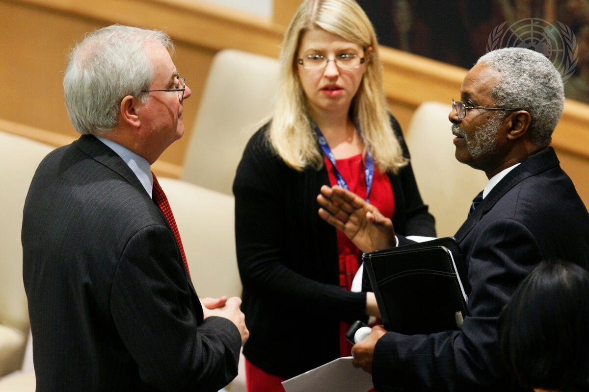 Elmi Ahmed Duale (right), Permanent Representative of the Somali Republic to the UN, converses with Mark Lyall Grant, Permanent Representative of the United Kingdom to the UN and President of the Security Council for November, prior to a Council meeting on piracy off the coast of Somalia.