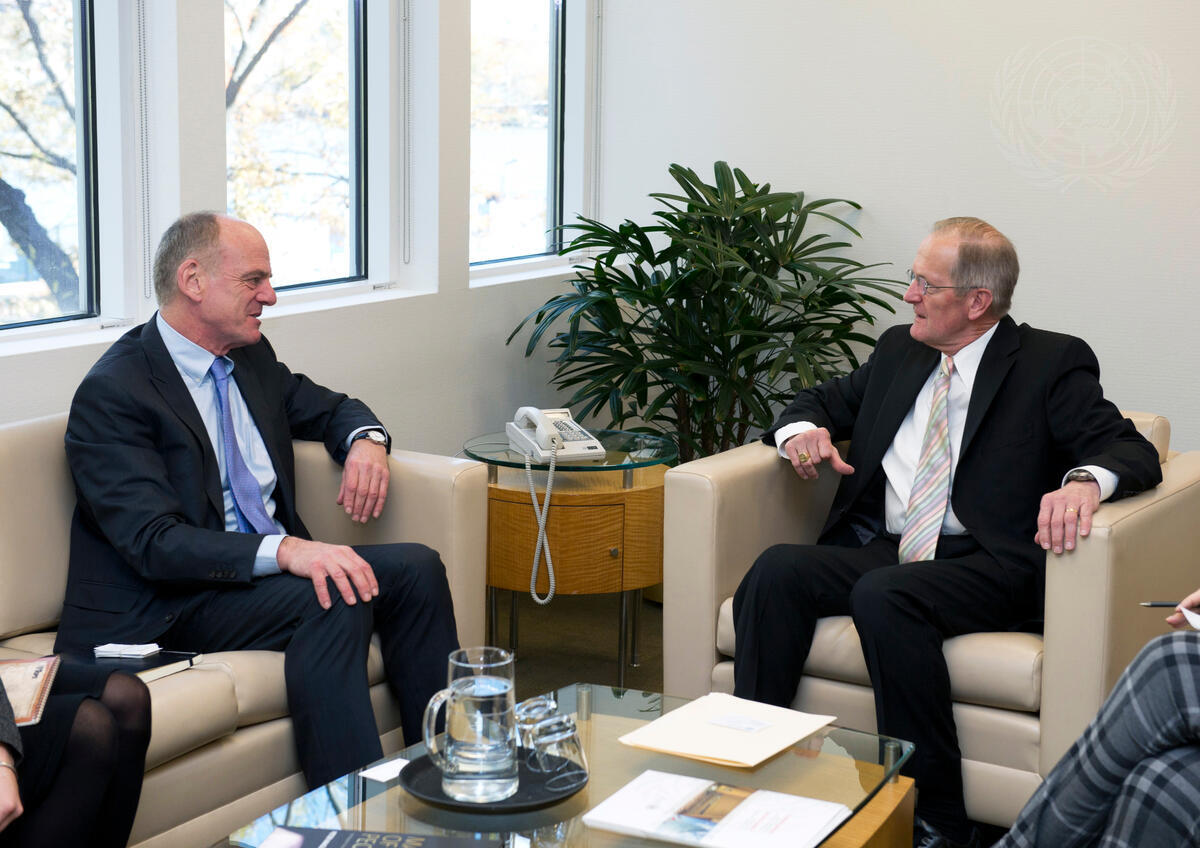 Joseph Deiss (right), President of the sixty-fifth session of the General Assembly, meets with David Nabarro, Special Representative of the Secretary-General on Food Security and Nutrition.