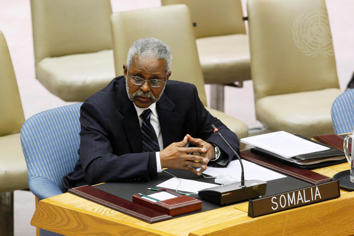 Elmi Ahmed Duale, Permanent Representative of the Somali Republic to the United Nations, addresses a Security Council meeting on piracy off the coast of Somalia. At the meeting Members considered the Secretary-General’s latest report on the issue.